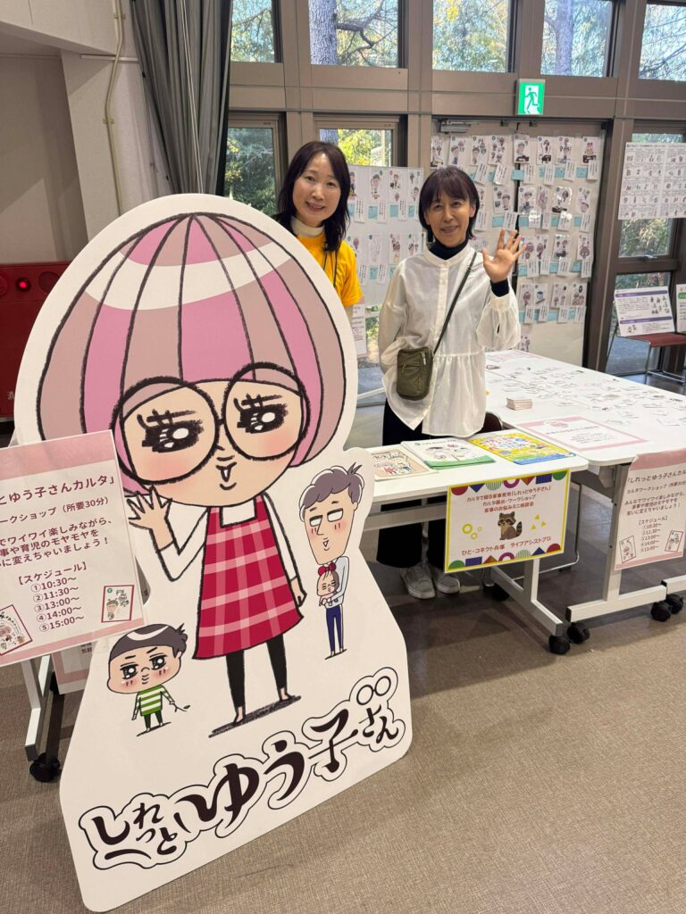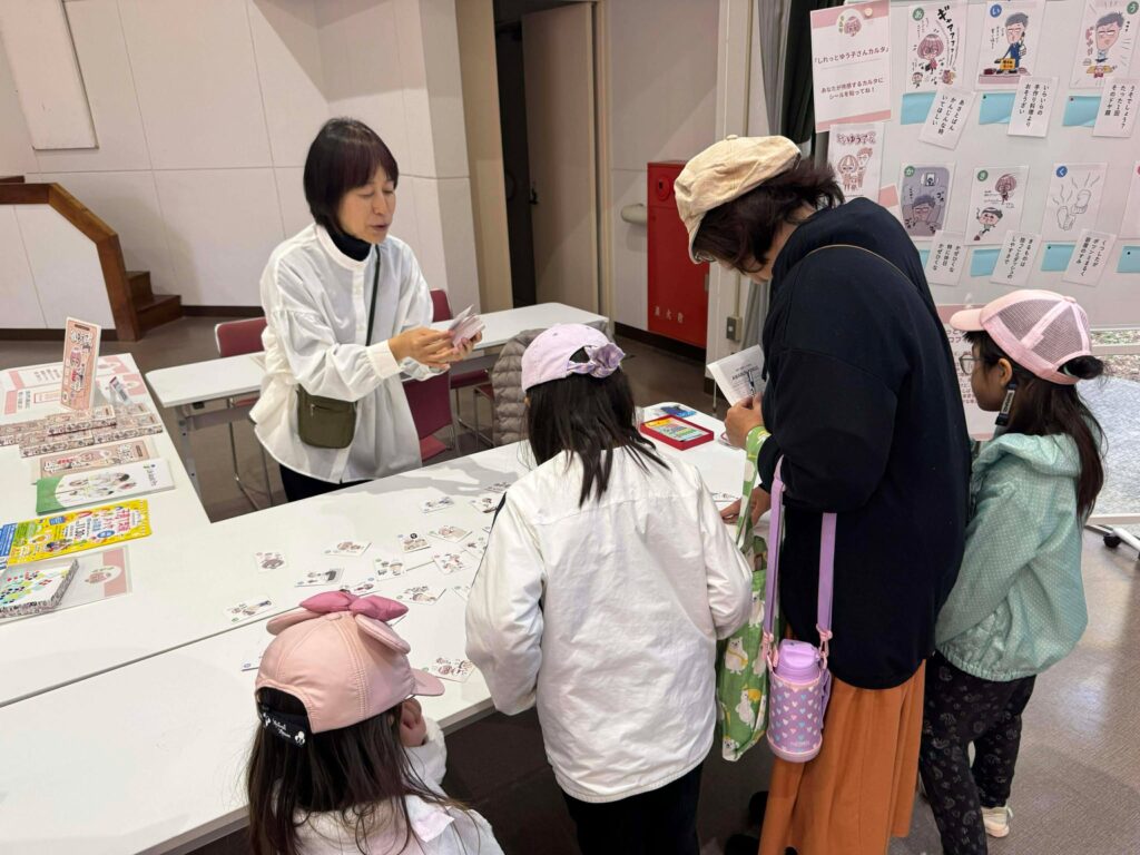 カルタを使ったワークショップでは、単に遊ぶだけでなく、カルタの札をきっかけに日頃の家事育児のお悩みについてお話しすることができました。 笑いあり、共感ありの時間を共有することで、今日一日で「しれっとゆう子さん」のファンが一気に増えた予感がします✨