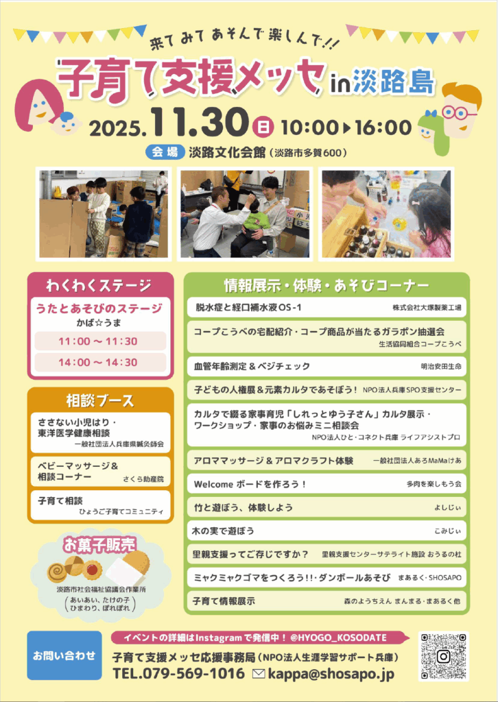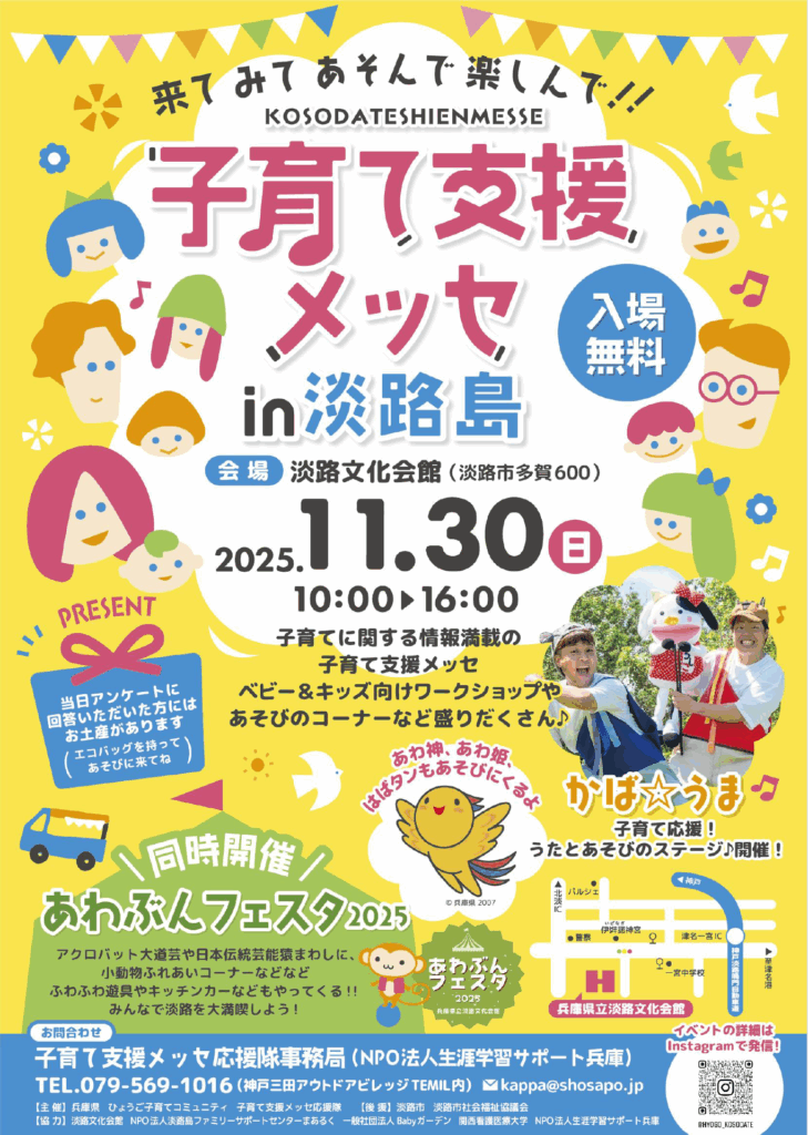 来る11月30日(日)、淡路文化会館で開催されるファミリーイベント「子育て支援メッセ in 淡路島」に参加することになりました。当日は、私たちオリジナルのカルタで綴る家事育児「しれっとゆう子さん」をテーマにした、楽しい展示とワークショップを行います。