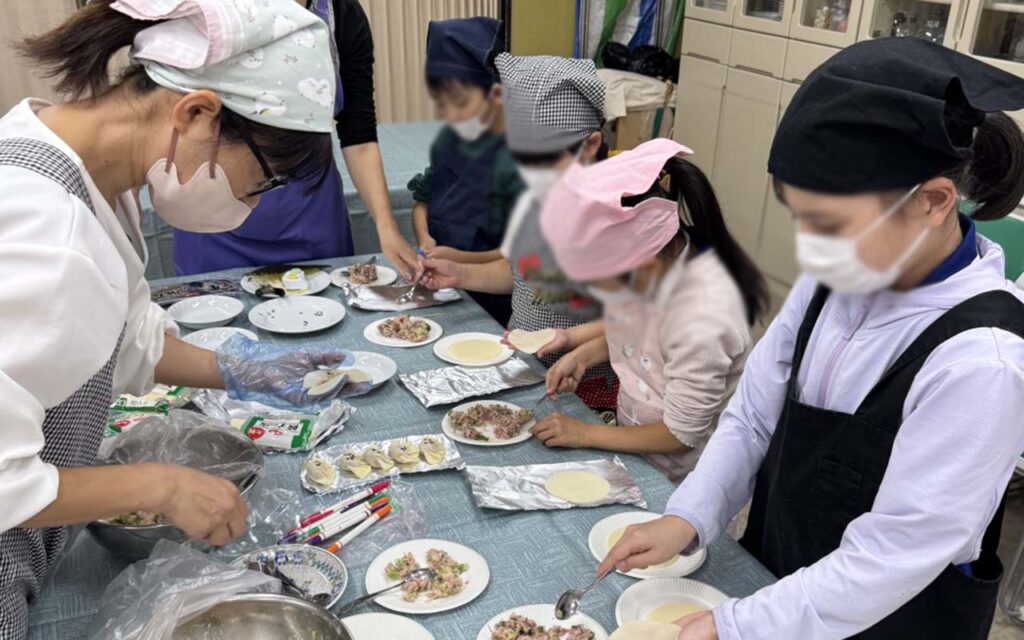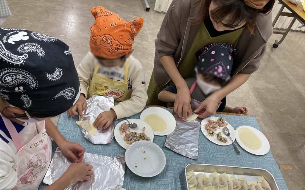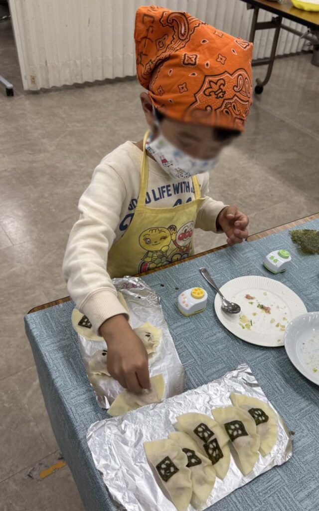 今日のメニューは、みんなで作る**『おばけ餃子👻🥟』。