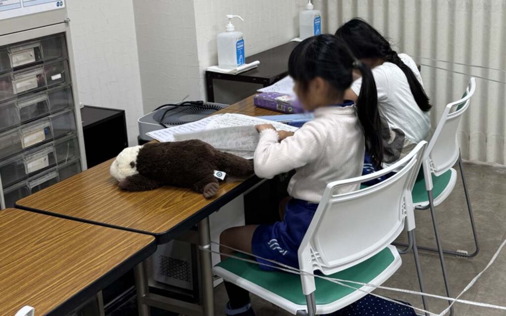 蜘蛛の巣をくぐったあとは、お勉強コーナー📚でしっかり宿題タイム✏️