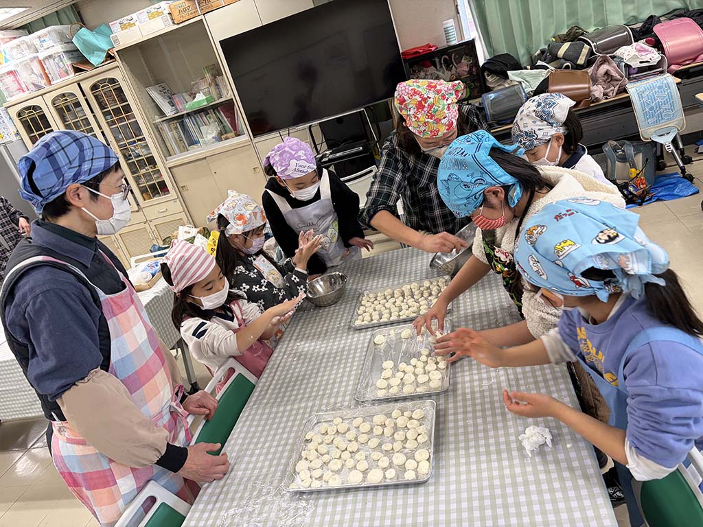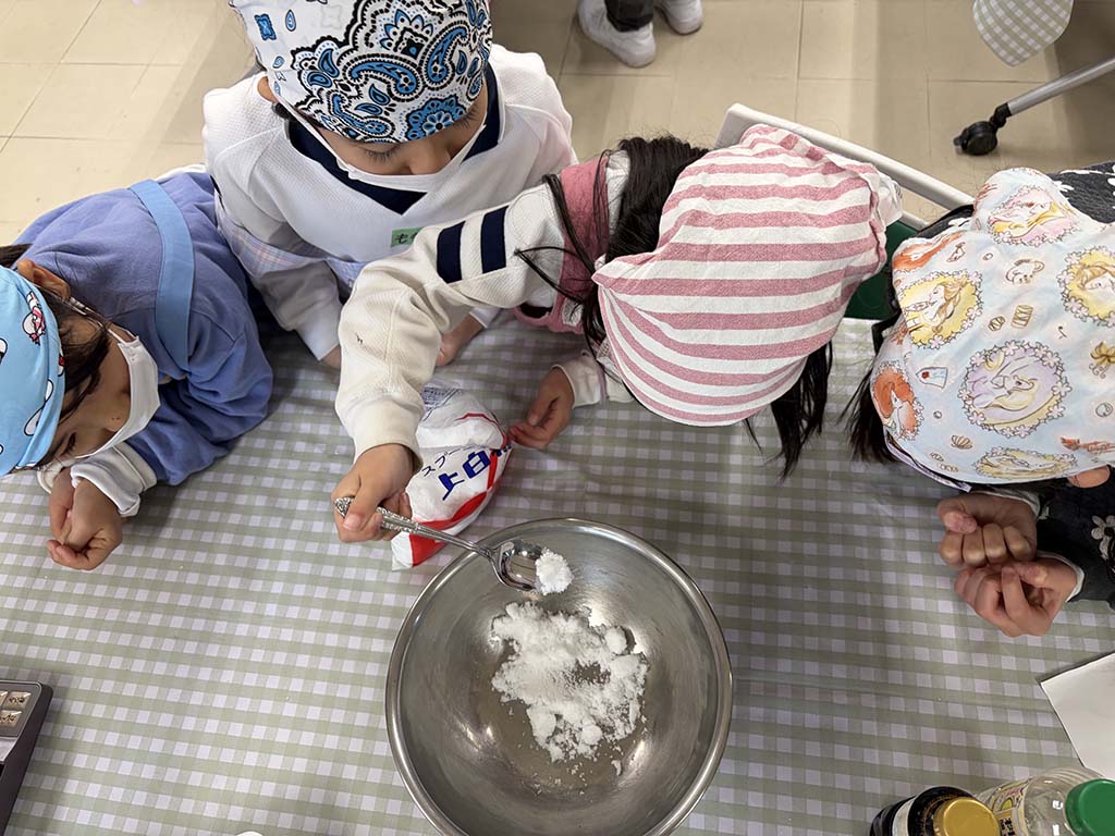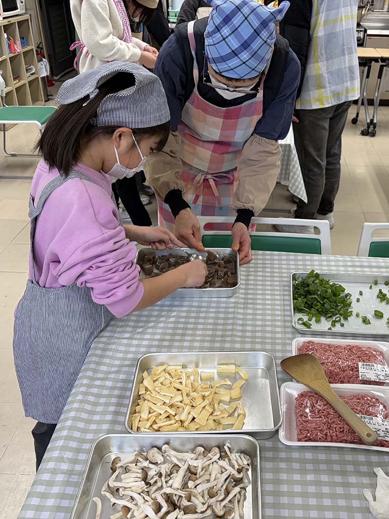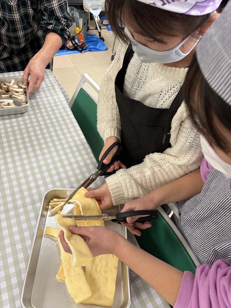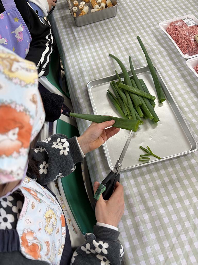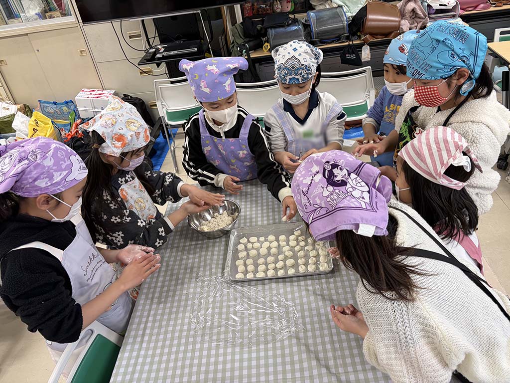 低学年はキッチンバサミで食材をカットしたり、白玉を丸めたり、調味料を量ったり…目をキラキラさせながら挑戦✨