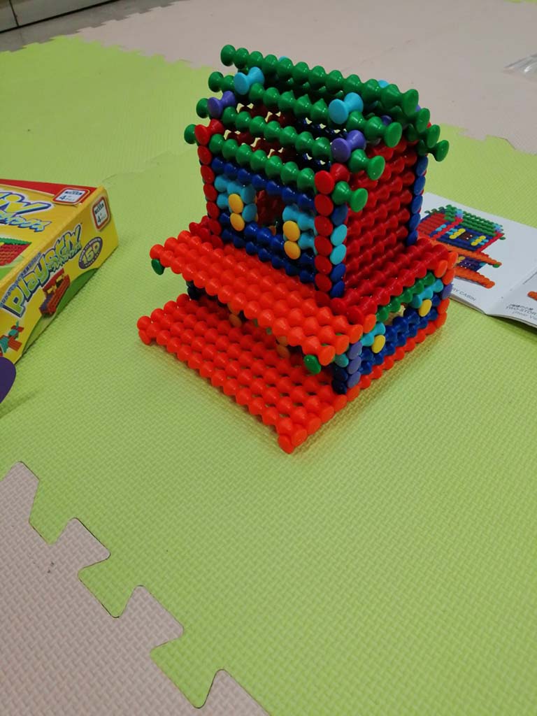 床マットの上でくつろぎながら遊ぶ姿は、すっかり「うちらんち」の定番風景に。