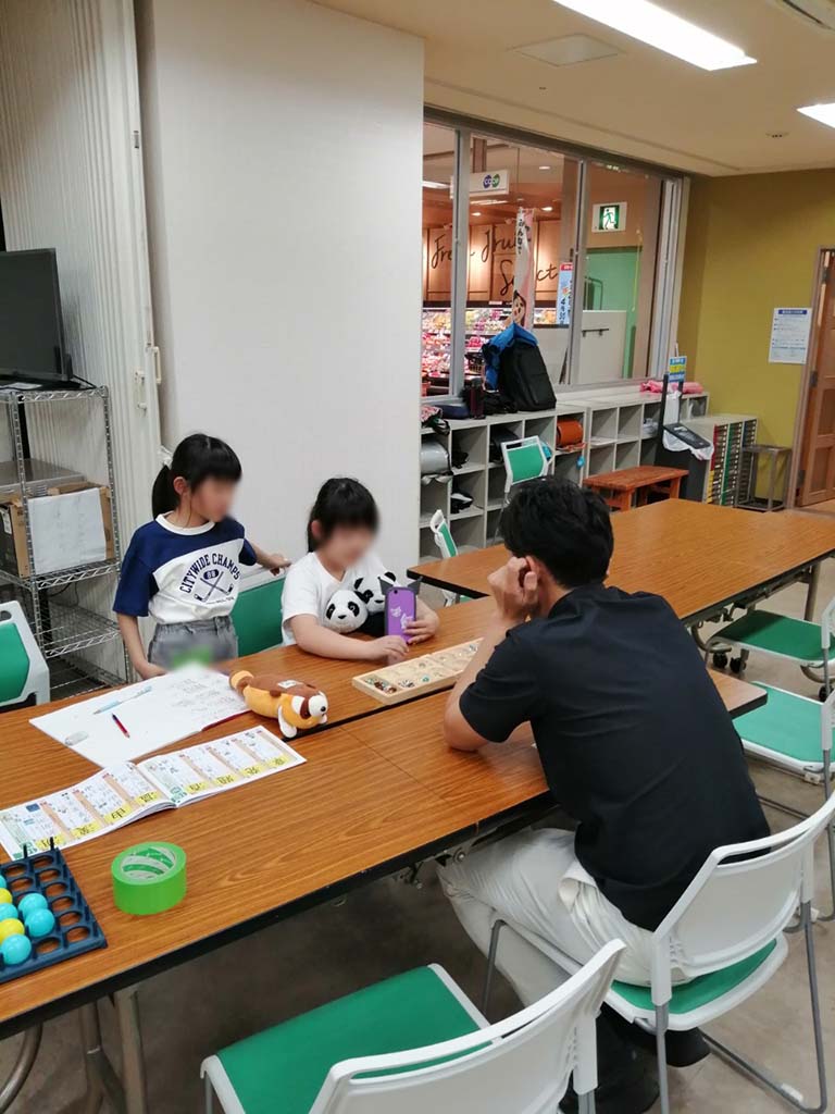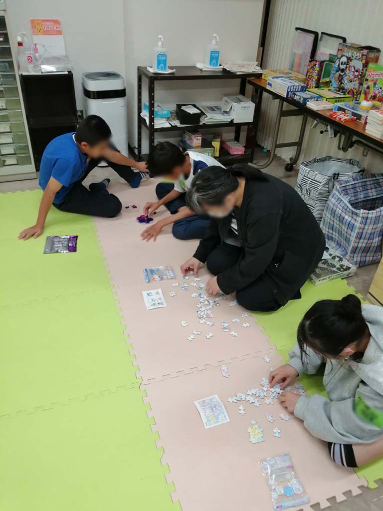 横になってパズルに集中する子、友達と丸くなってボードゲームを楽しむ子、ゆったり会話をしながら過ごす子。