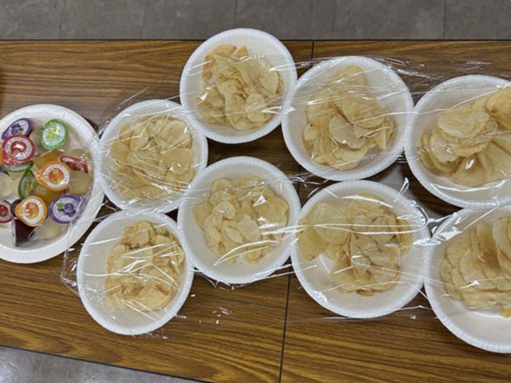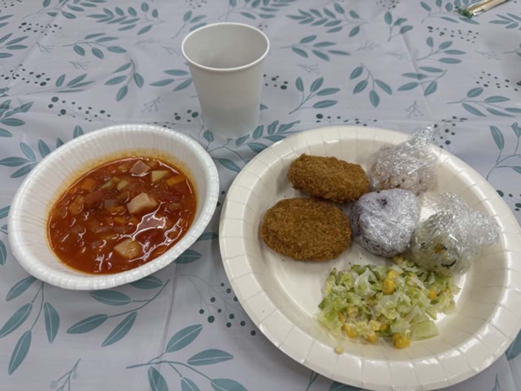 今回のごはんは、ミネストローネ、おにぎり、コールスロー、おやつ。
