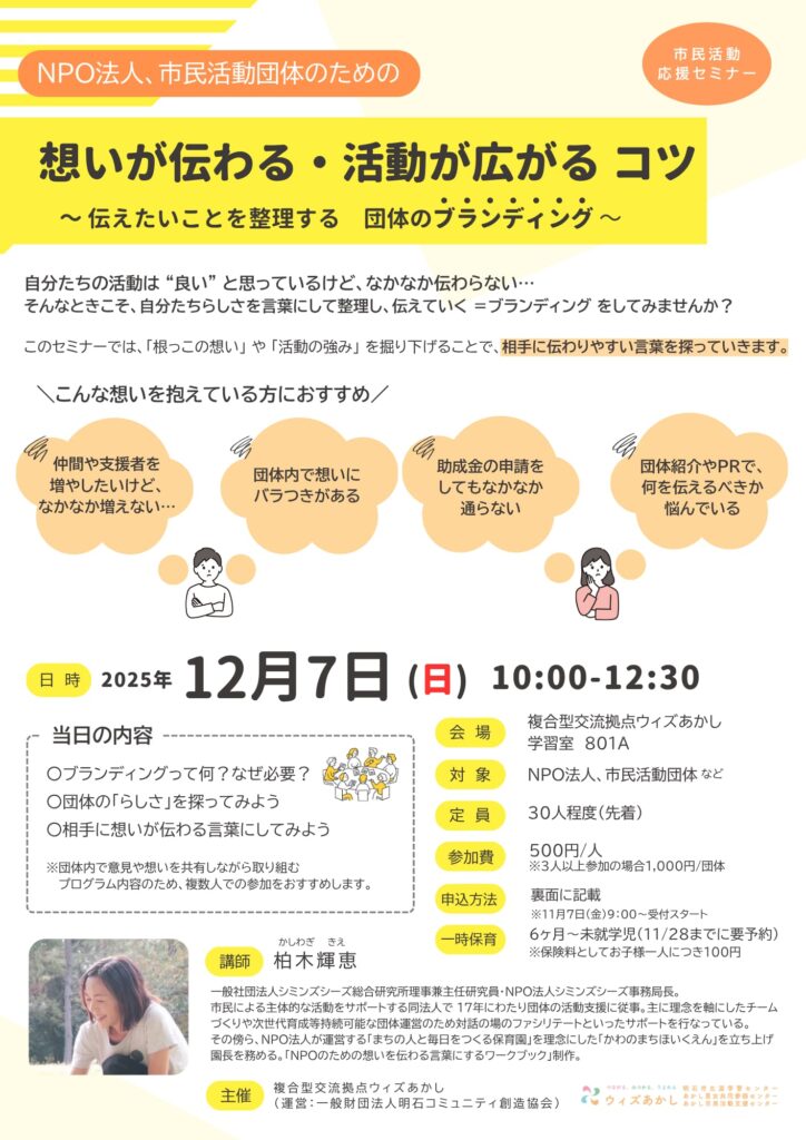 本セミナーでは、団体の「根っこの想い」「活動の強み」を丁寧に掘り下げながら、